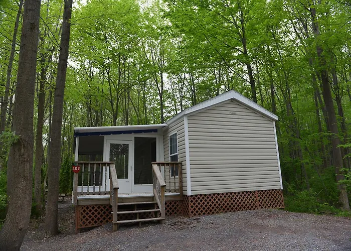 Las habitaciones del Appalachian Camping Resort Park Model 2 son espaciosas y cómodas, ideales para relajarte después de un día de aventura. Cada modelo está equipado con todas las comodidades que necesitas, incluyendo cocina, salón y dormitorios acogedores, todos diseñados para ofrecerte el máximo confort. Además, podrás disfrutar de las vistas panorámicas de los alrededores desde tu propia terraza privada.